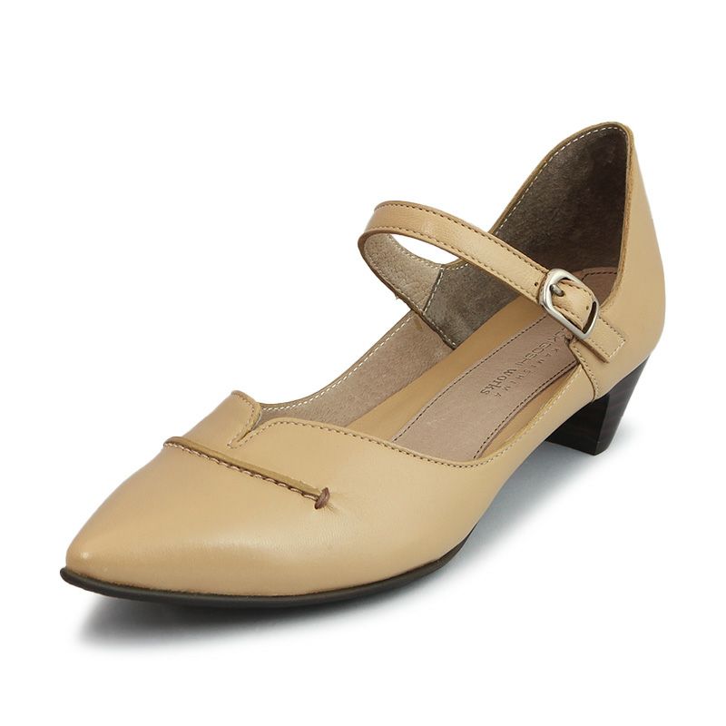 傾斜の少ない低寸ヒールで前に足が滑ることもなく、足先に負担がかかりにくくなっています。