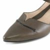 ポインテッドトゥのV字カットパンプス。