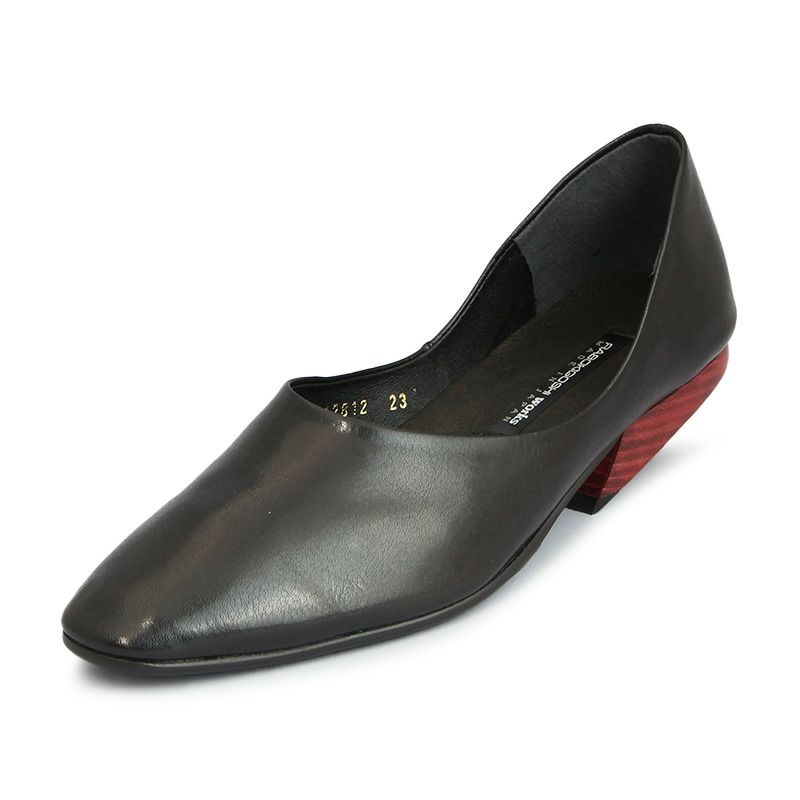 【継続品】works ラボキゴシワークス 12812 B ブラック スリッポンパンプス ラウンドトゥ 3.5cmヒール ステア