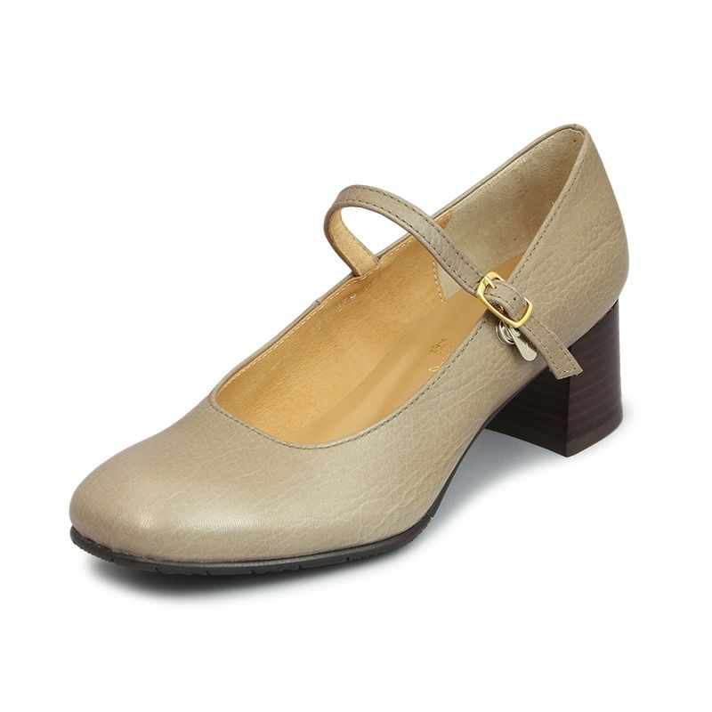 【継続品】あしながおじさん 3710379 GG グレージュ ストラップ付パンプス 5cmヒール スクエアトゥ 牛革