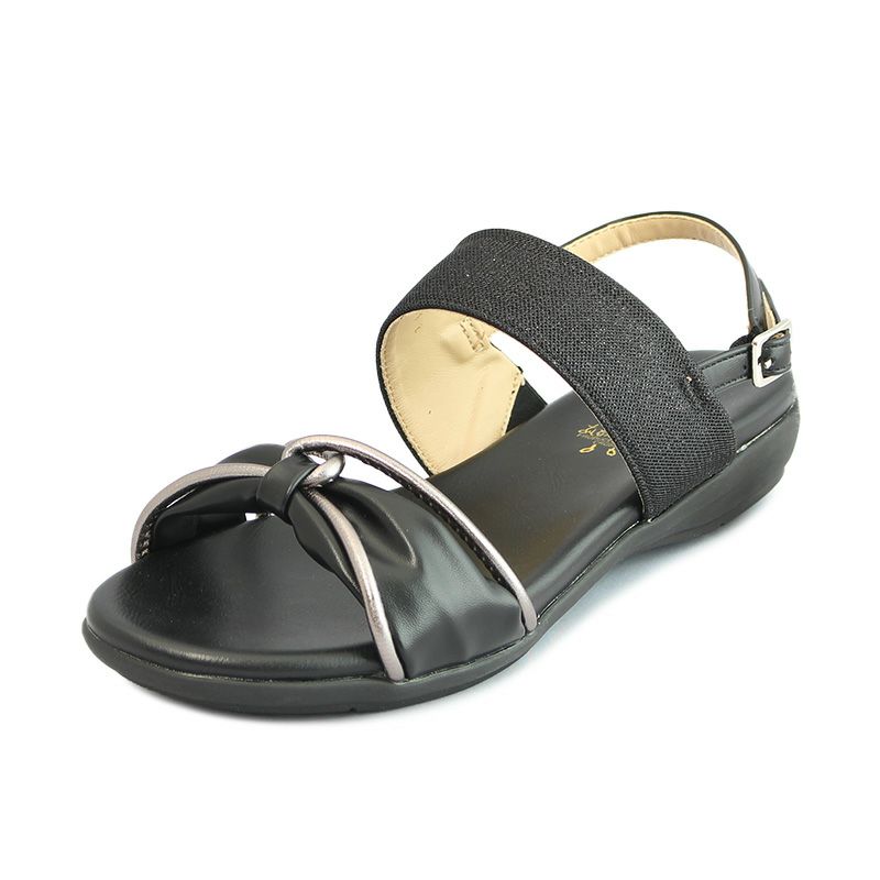 異素材コンビが足元を華やかに彩るバックストラップサンダル。
