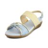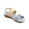 異素材コンビが足元を華やかに彩るバックストラップサンダル。