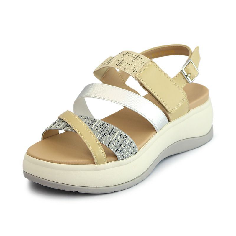 【継続品】あしながおじさん 2410193 YE-C イエローコンビ サンダル ストラップ 5cmヒール 厚底 ゴム×羊革