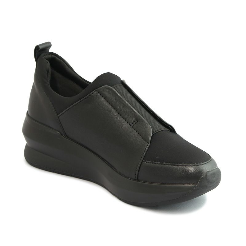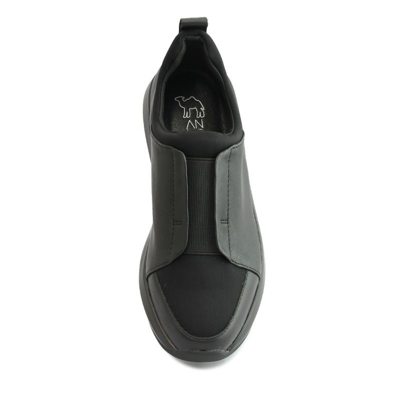【新商品】ANYO アンヨ 2840067 BL ブラック 厚底スニーカー ウェッジソール 撥水 5.5cmヒール 羊革×生地×牛革