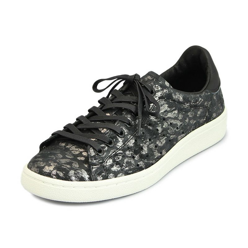 ピッグレザーにヒョウ柄とモヤのかかった独特なデザインを施した一足。
