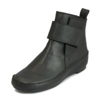 40代後半です。ブーツは紐にしろジッパーにしろ、しゃがんで引っ張る作業がちょっとつらくなりました。その点、こちらのブーツは足をいれてしまえばマジックテープでワンタッチで楽ちん。洗練されたモードなデザインなのに、20年後の自分でも苦もなく履けそうな装着のしやすさ。機能性とデザインが両立されています。 革も始めから柔らかく、適度なソールの厚みも快適です。買って良かったです。